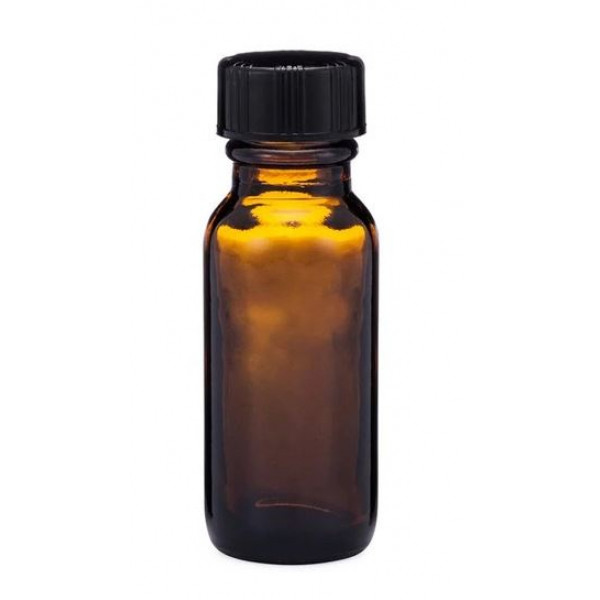 0.5oz Amber Boston Round Assembled w/18-400 Black Phenolic Poly Cone Lined Cap (720/cs)