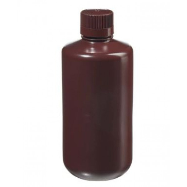 1000mL Narrow Mouth Opaque Amber HDPE Bottle, 38-430 Amber PP Screw Thread Closure {Packaging Grade} (50/cs)