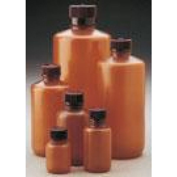 1000mL Narrow Mouth Translucent Amber HDPE Bottle, 38-430 PP Screw Thread Closure {Packaging Grade} (50/cs)