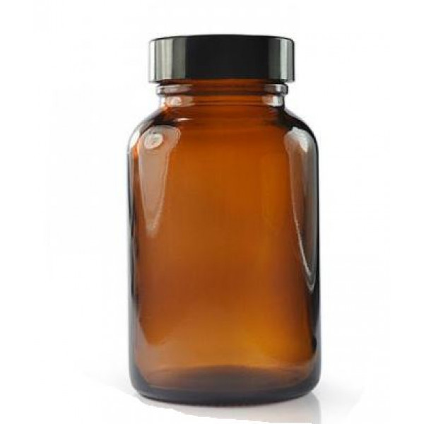 120mL Amber Wide Mouth Packer Assembled w/38-400 Black Phenolic Poly Cone Lined Cap (24/cs)