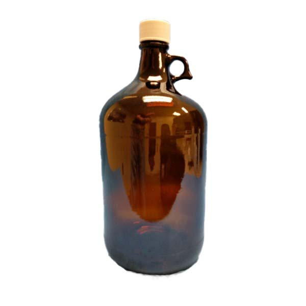 128oz Amber Ring Handled Jug Assembled w/38-439 White PP PTFE Lined Cap, Certified (6/cs)