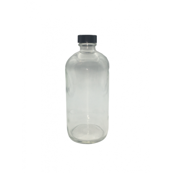16oz Clear Boston Round Assembled w/28-400 Black Phenolic Poly Cone Lined Cap (60/cs)