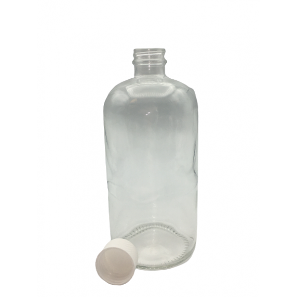 16oz Clear Boston Round Assembled w/28-400 PTFE Lined Cap, Labeled Lot & Cont#, Certified (12/cs)