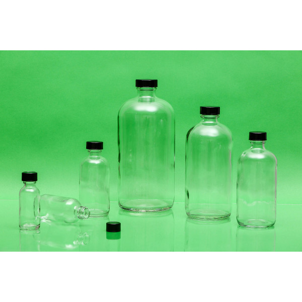 1oz Clear Boston Round Assembled w/20-400 Black Phenolic Poly Cone Lined Cap (432/cs)