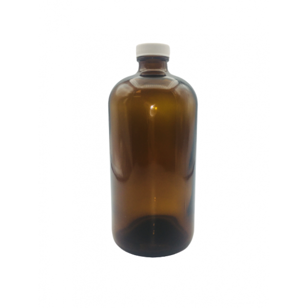 32oz Amber Boston Round Safety Coated Assembled w/33-400 PTFE Lined Cap (12/cs)