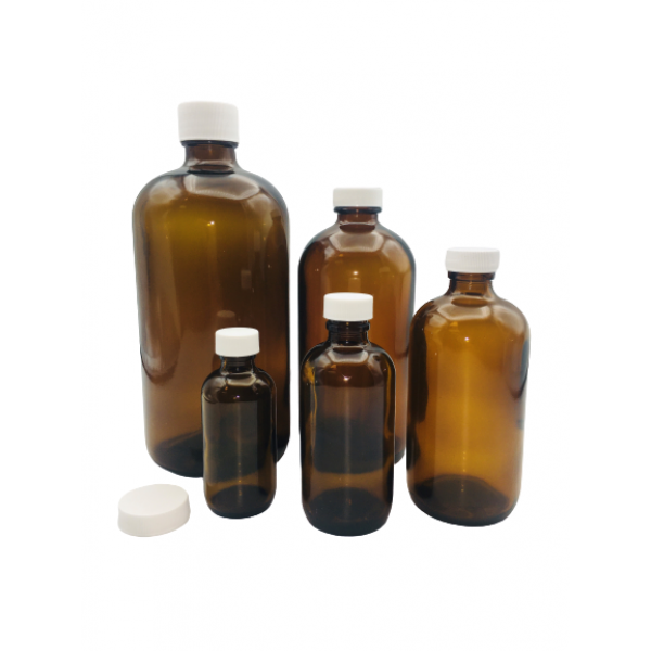 4oz Amber Boston Round 22-400 WHT PTFE B1/BC/ Ammonium Chloride (12.5mg) (24/cs)