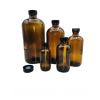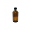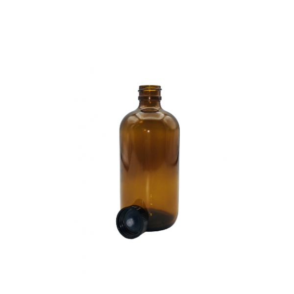 8oz Amber Boston Round Assembled w/24-400 Black Phenolic Poly Cone Lined Cap (108/cs)