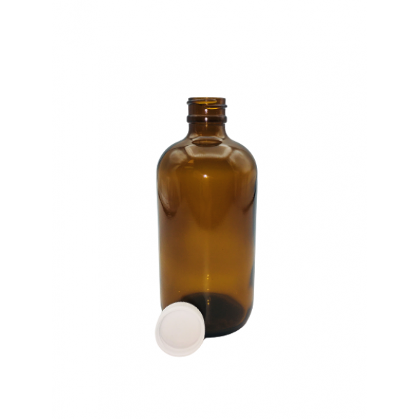 8oz Amber Boston Round Assembled w/Cap, w/2mL 1:1 Sulfuric Acid (H2SO4) BarCoded (12/cs)