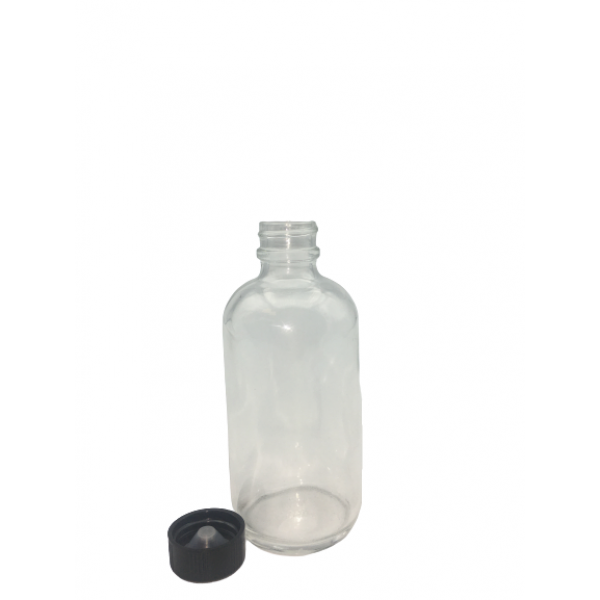 8oz Clear Boston Round Assembled w/24-400 Black Phenolic Poly Cone Lined Cap (24/cs)