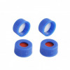 9-425 Blue PP Threaded Cap Assembled w/Bonded PTFE/Red Rubber Septum (100/pk)