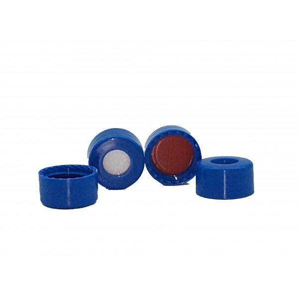 9MM BLUE SMOOTH SCREW CAP w/ ST2500 .040" (1MM) THICK, RED PTFE / WHITE EASY PIERCE SILICONE 100pk