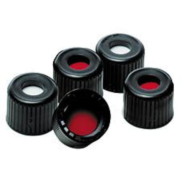 Black PP 8-425 cap w/ Ivory PTFE-Red Rubber Septa Assembled (100pk)