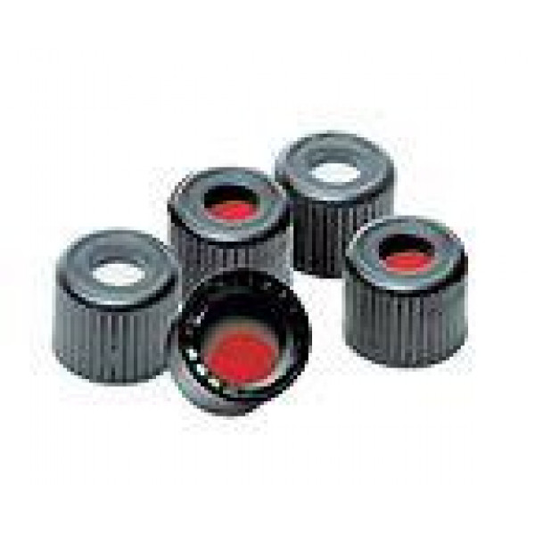 Caps, PP Open-Top Cap; 8-425 thread; with 8mm Red PTFE/White Silicone/Red PTFE septum (100/pk)