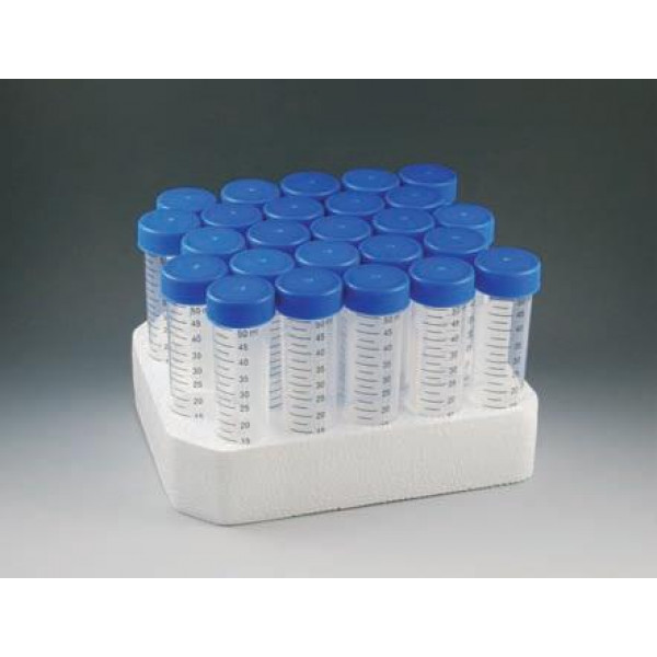 Centrifuge Tube, 50mL, Attached Blue Flat Top Screw Cap, PP, Printed Graduations, STERILE, 25/Rack, 20 Racks/Unit