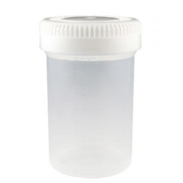 Container: Tite-Rite, 60mL (2oz), PP, 48mm Opening, Graduated, with Separate White Screwcap, 500/Unit