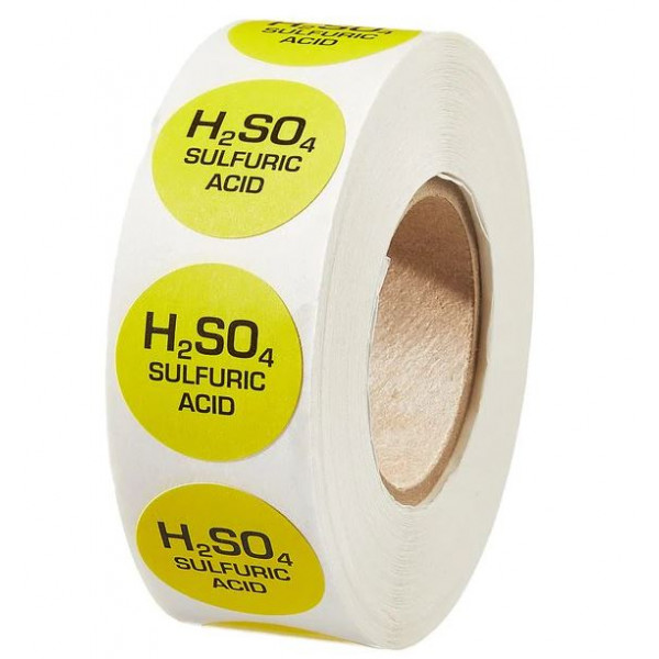 Sulfuric Acid Yellow Color Coded Sample Labels {H2SO4} (1000/Roll)