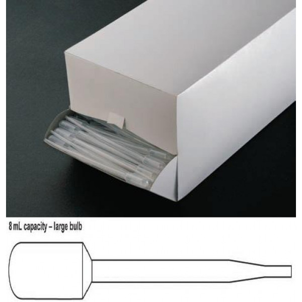Transfer Pipet, 8.0mL, General Purpose, Large Bulb, 157mm, 400/Dispenser Box, 10 Boxes/Unit