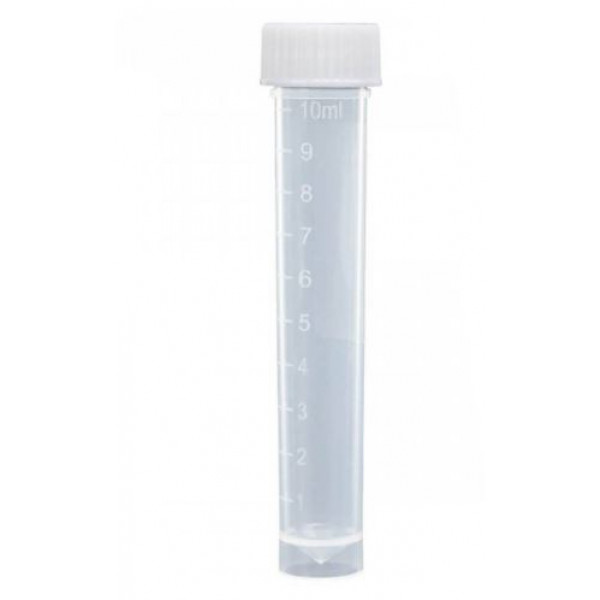 Transport Tube, 10mL, with Separate White Screw Cap, PP, Conical Bottom, Self-Standing, Molded Graduations, 1000/Unit