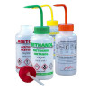Wash Bottle, Ethanol, 500mL, LDPE, Multi-Lingual, Safety Vented, ORANGE Screwcap, 1/Unit